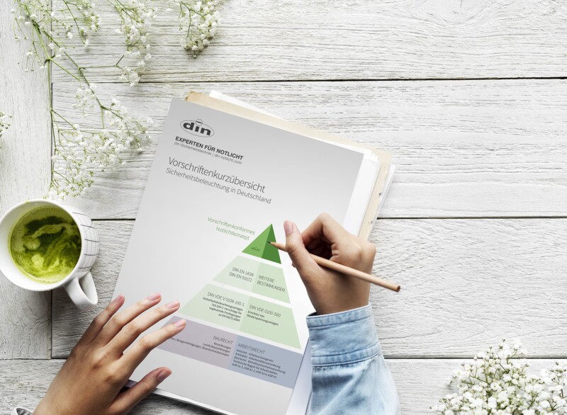 Gerne unterstützen wir Sie bei der Planung Ihres Projektes und der Abstimmung mit Behörden, damit Sie die vorherrschenden Normen für Not- und Sicherheitsbeleuchtung einhalten. Kontaktieren Sie Ihren din-Ansprechpartner.