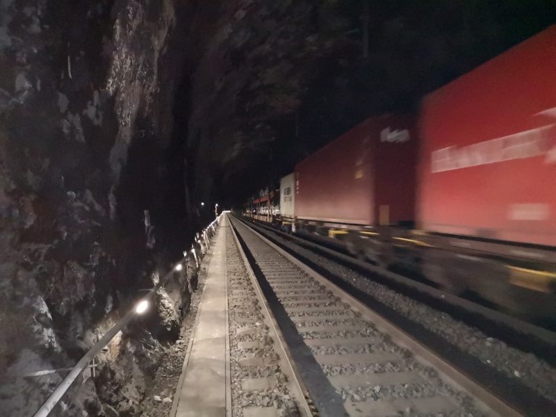 Der knapp 1.000m lange Ofenauer Tunnel auf der Salzburg – Tiroler Bahn wurde 2019 im Bereich des beleuchteten Handlaufs saniert, um die geforderten Beleuchtungswerte zu erfüllen.