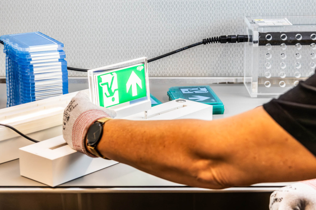 Our production facility in Linz manufactures emergency lighting solutions such as emergency and safety luminaires, supply units and special solutions for railway infrastructure. Our expertise, know-how and technical resources enable us to produce our entire emergency lighting portfolio at our Linz site. High-volume orders are specifically passed on to selected manufacturing partners who share our values. These partners are equipped with our knowledge, clearly defined production processes and the necessary technical resources to maintain our uncompromising quality promise to our customers.