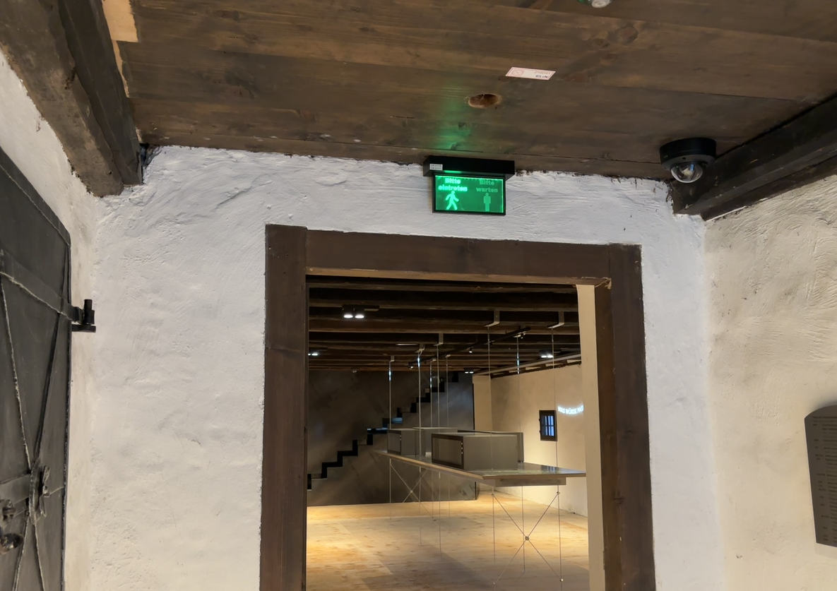 The colour green is part of our corporate identity and therefore also suitable for creating an effect on passers-by at night. The EYE 90 security lighting was mounted on discreet metal columns and lined with a cover to achieve a harmonious effect of ambient lighting on the outside.