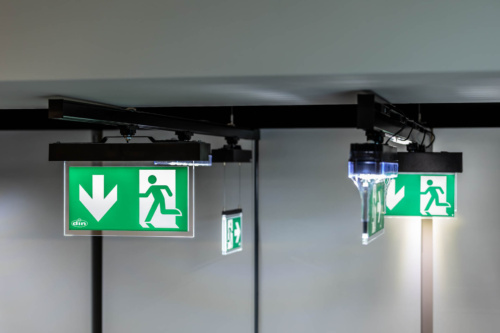 Modern emergency lighting must be easy to integrate into existing infrastructures – without costly conversions or compromising on safety and compliance with standards. Our emergency lighting components are designed to be directly integrated into various continuous-row lighting systems. The combination of emergency signs and safety luminaires with general lighting makes additional installations unnecessary – ideal for attractive architectural integration.