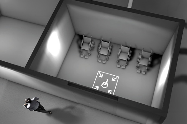 Viene identificato come quel luogo sicuro temporaneo ove gli occupanti, generalmente persone disabili o con difficoltà motorie speciche, possono attendere assistenza per completare l’esodo verso un luogo sicuro. Gli spazi calmi devono essere dimensionati in base al numero di utilizzatori previsto dalle normative vigenti, dotati di apposita segnaletica e illuminazione di sicurezza.