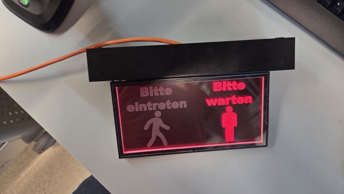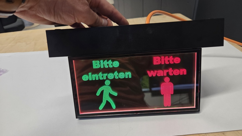 Odgovorni arhitekt nas je pooblastil, da izvedemo rešitev, ki pred vstopom v razstavni prostor jasno pokaže, ali je doseženo največje število obiskovalcev. Z zunanje strani naj bo jasno razvidno, kdaj nadaljnji vstop ni več mogoč.