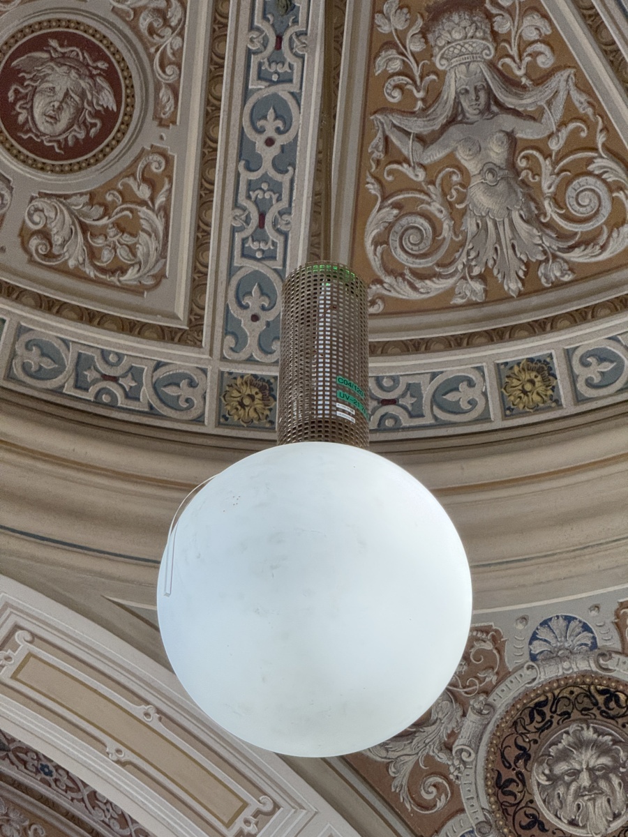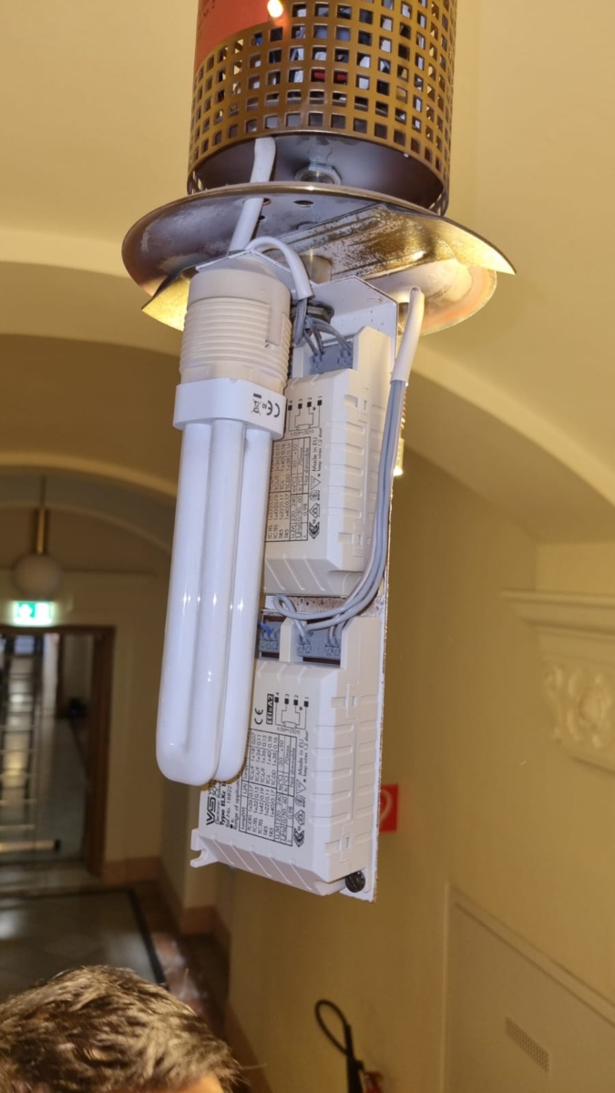 V okviru tega projekta je bilo zaradi spomeniške zaščite objekta potrebno premagati več tehničnih in oblikovalskih ovir. Da je bila izpolnjena zahteva po ustrezni osvetlitvi evakuacijske poti, je bilo potrebno realizirati varnostno svetilko z ustrezno optiko. Zato vir svetlobe ni smel sevati skozi obstoječo kroglo, ki bi razpršila svetlobo, ampak mimo nje.